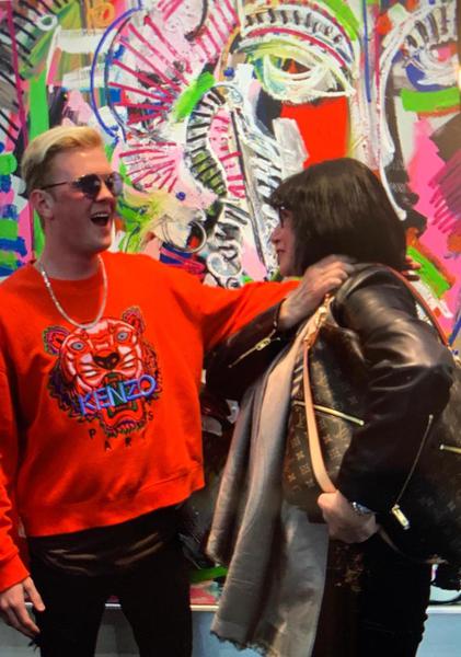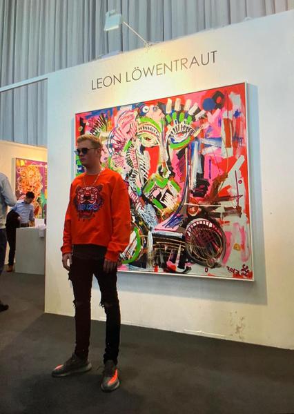 Die Galeristin Mariana Mirea im Gespräch mit dem Künstler Leon Löwentraut auf der art KARLSRUHE