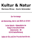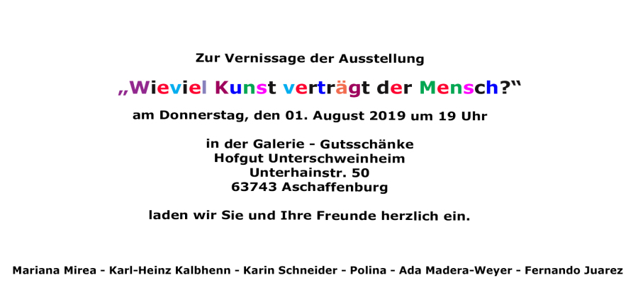 In dieser Ausstellung ergänzen sich die Künstler Mariana Mirea, Karin Schneider, Karl-Heinz Kalbhenn, Polina, Ada Madera-Weyer und Fernando Juarez.